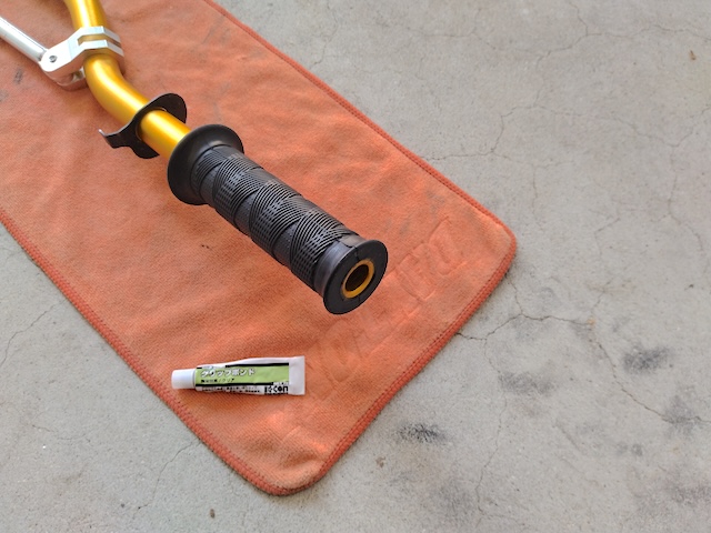 ハンドルとグリップの間にパーツクリーナーを注入してねじれば、簡単に接着が切れてグリップを取り外すことができます。