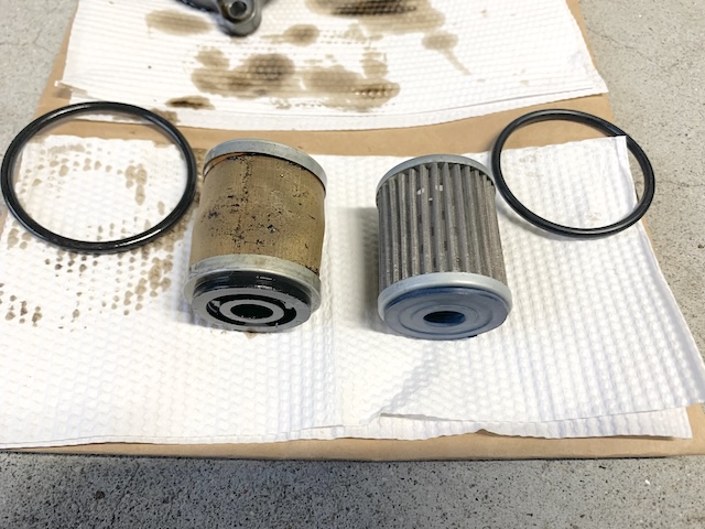 古いフィルターは汚れ、細かい金属片のようなゴミが多数付着しています。