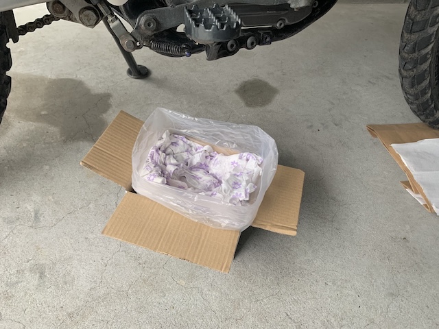 オイル交換はバイク屋さんやバイク用品店に依頼することもできますが、今回は普段見ることのない部分の点検もかねて自分で交換作業をしました。