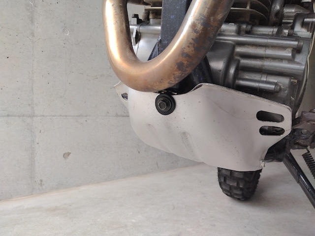 当然スーパーシェルパのフレーム形状はTT250Rと異なり、アンダーガードの内寸を広げる曲げ加工も必要になりそうです。